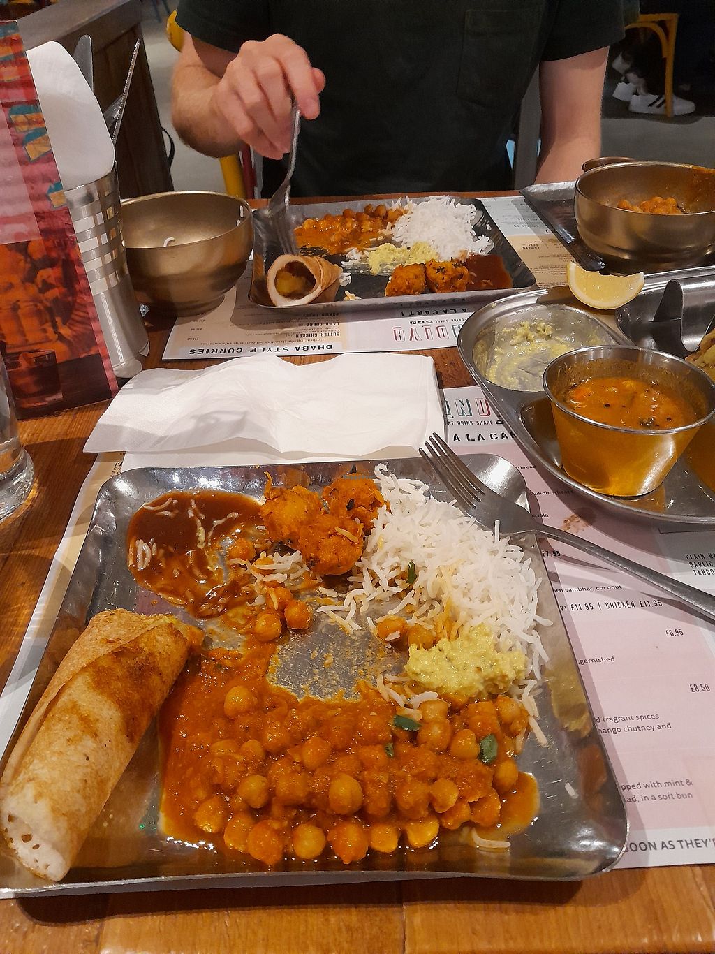 Good vegan Indian street food options. My favourite is the samosa chat, small dishes but filling.