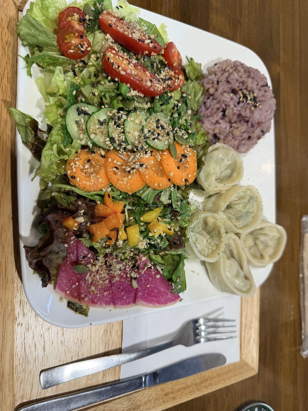 We found this place on Happy Cow and it was excellent! We were looking for something light so the salad option was really nice—it’s super filling though, and very tasty. The restaurant is pretty small with maybe enough seats for 10 people at most, but still very comfortable and it didn’t feel crowded somehow. The owners and young chef are fluent in English (and a variety of other languages) and very friendly. It was really nice chatting with them during dinner (there’s a bar that separates you from the grill and kitchen, so they are cooking in front of you the whole time) and the conversations are fun and interesting! The vibes were so positive! We really enjoyed it! Overall, it’s a great opportunity to meet some amazing locals and eat some delicious vegan food.