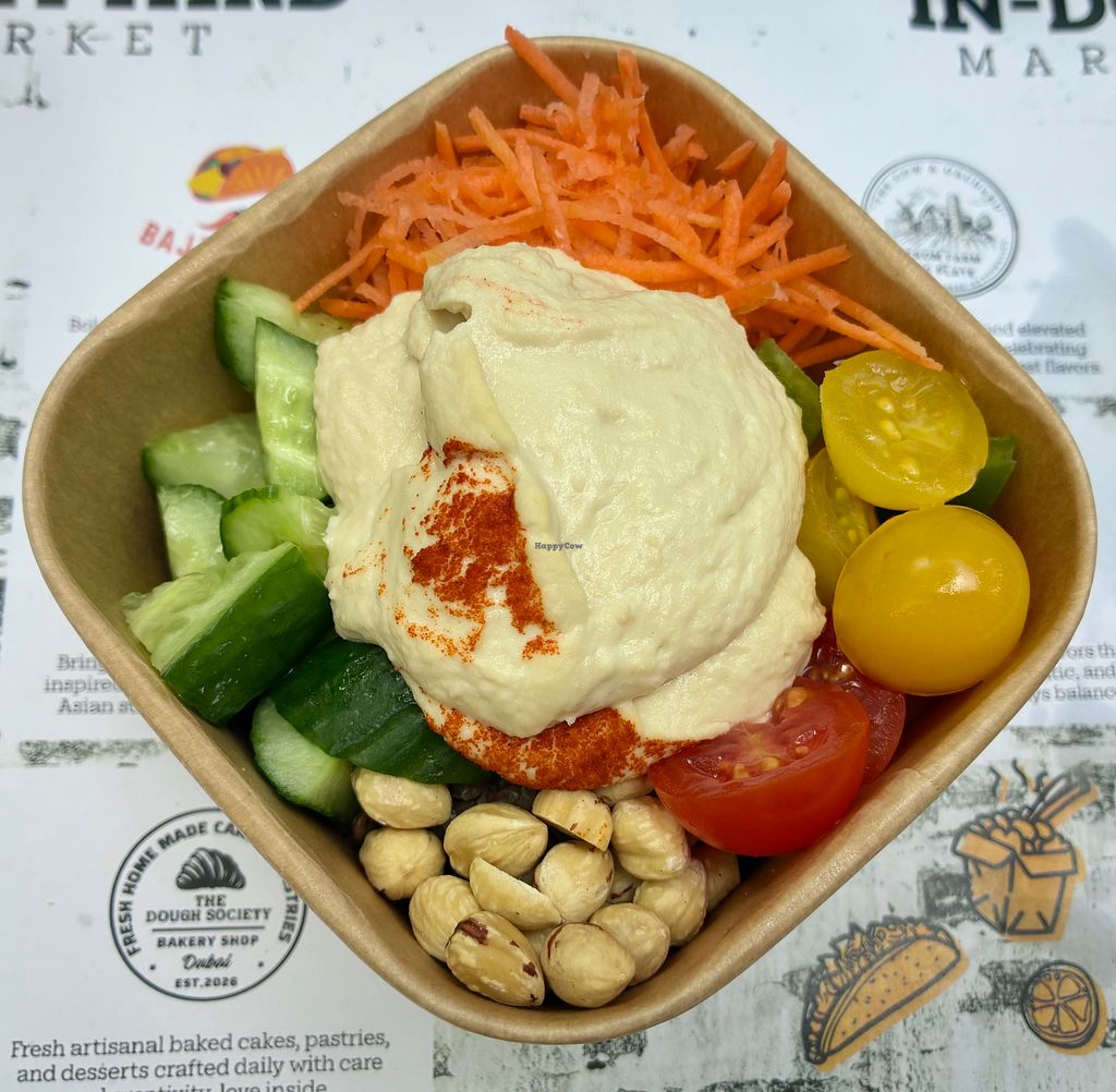 Serves meat, vegan options available. An all-day dining and brunch restaurant within the Anantara Downtown hotel that serves international cuisine. Vegan options include fresh cut fruit, açai bowl, jackfruit kathi roll, fermented rice Bombay sandwich, spring rolls, som tam, miso ramen, birria-style tacos, nachos, yuca fries, uttapam, dosa, dal tadka, yuzu tofu poke, and a salad bar plus a selection of breads and condiments. Allergens on the buffet and vegan menu items are clearly labelled. Open Mon-Sun 7:00am-10:30am, 6:30pm-11:00pm, Mon-Fri 12:00pm-4:00pm, Sat 1:00pm-4:00pm, Sun 12:00pm-4:00pm.