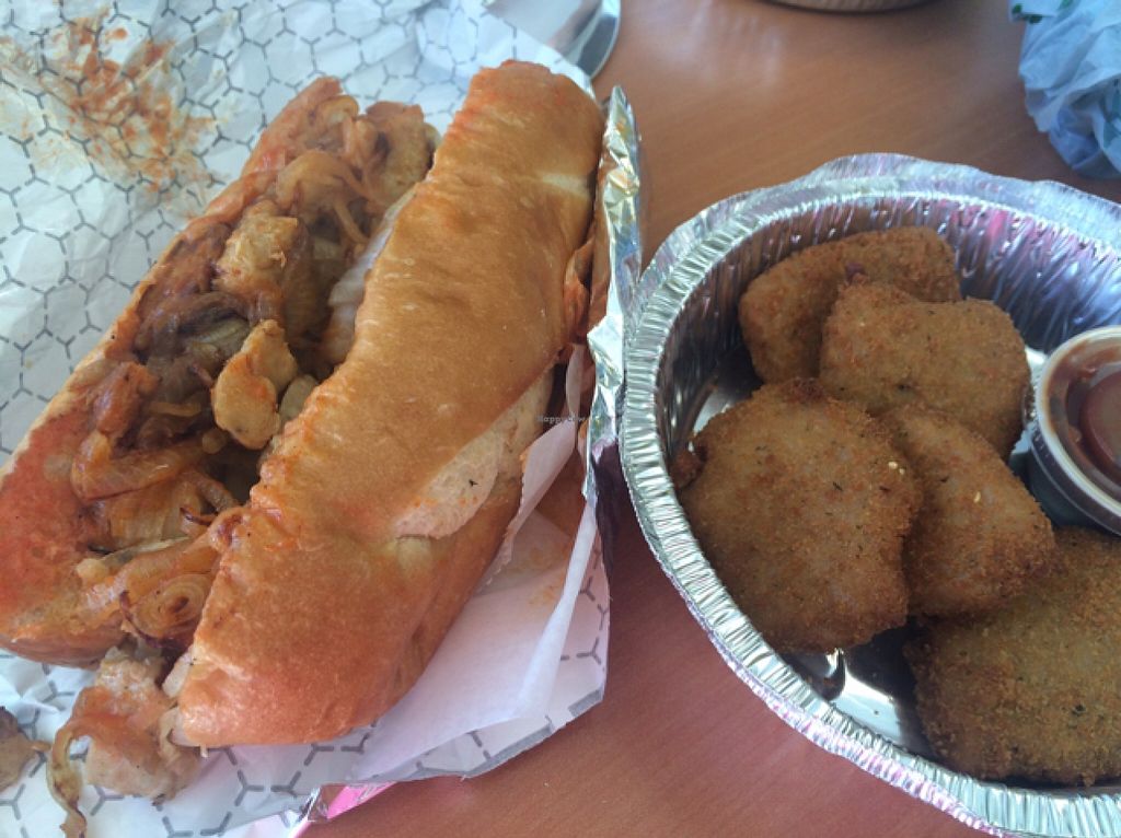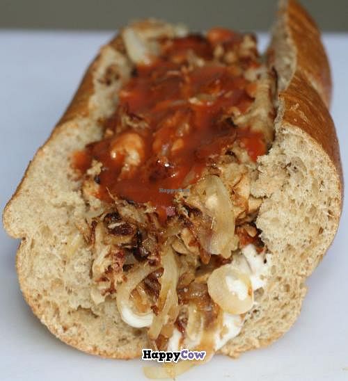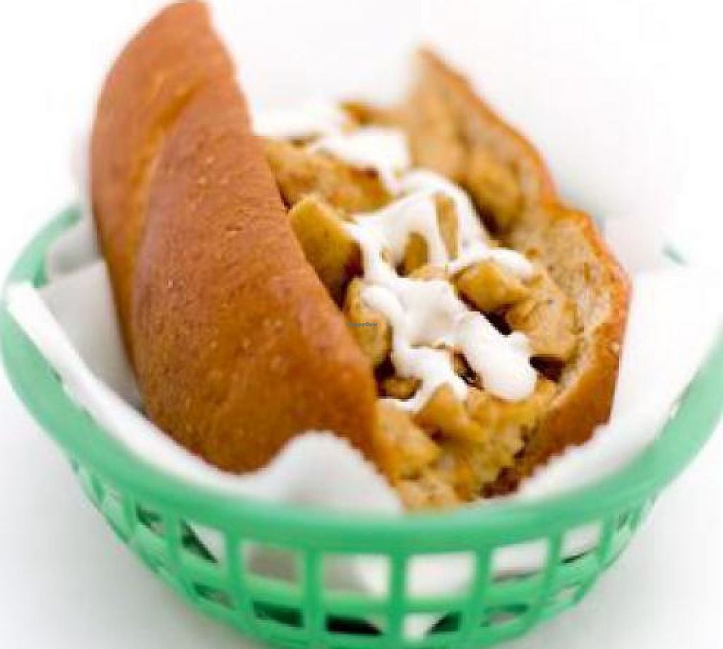 Takeaway vegetarian food shop. Providing vegan American comfort foods like mock buffalo chicken cheese steak, soy rib tip wrap, chicken nuggets, tangy mango tofu, and teriyaki steak. Also salads, fruit smoothies, and desserts. JAN 2018 CLOSED PER OWNER.