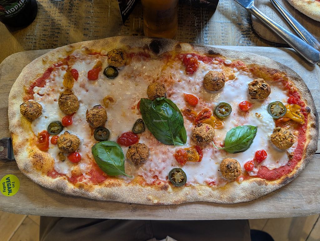 Not been to this branch before, even though it's in the centre of town. Vegan menu improved by a bruschetta, different pizza types and an amazing dessert which was really the pièce de résistance for me. Beautiful. The lentil pasta was enjoyable and the service was friendly if a little slow (although they were busy as snooker is in town). Would go back.