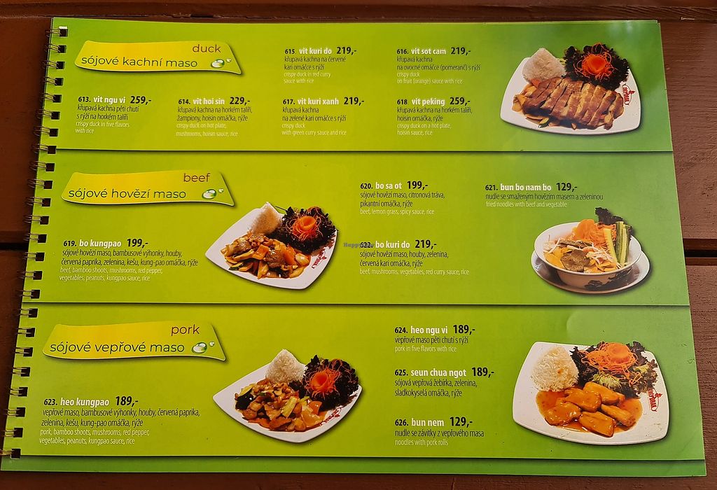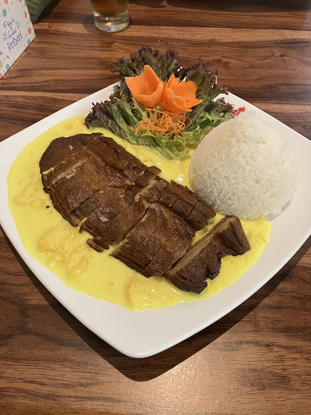 Es gibt eine komplett vegane Extra-Karte (man muss nachfragen) mit vielen verschiedenen Optionen wie Ersatz für Ente, Hühnchen, Schwein, Rind und Fisch/Meeresfrüchte. Es gibt aber auch Gerichte mit Tofu und komplett ohne Ersatzprodukte. Wir haben vegane Ente und Shrimps probiert. Es war interessant es zu probieren und hat auch gut geschmeckt. Jedoch würden wir persönlich es nicht noch einmal essen wollen. Wir essen aber generell nicht so häufig Ersatzprodukte. Es sind große Portionen.