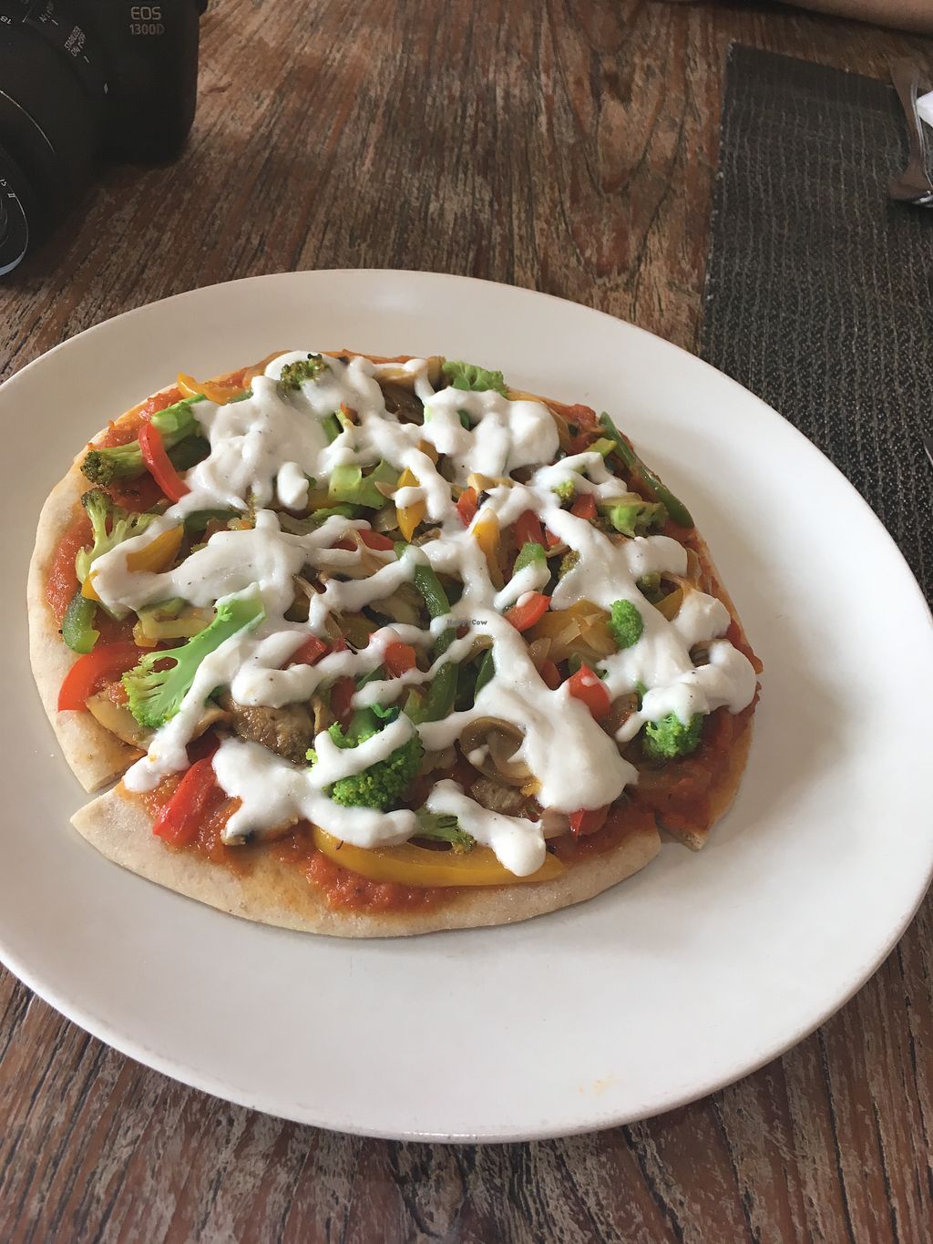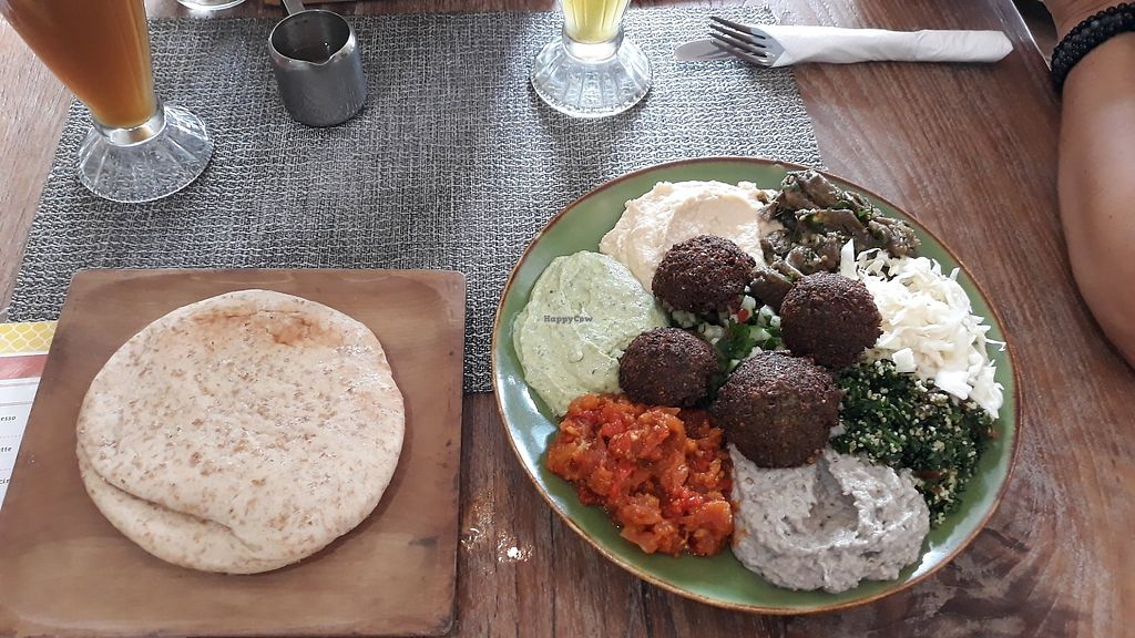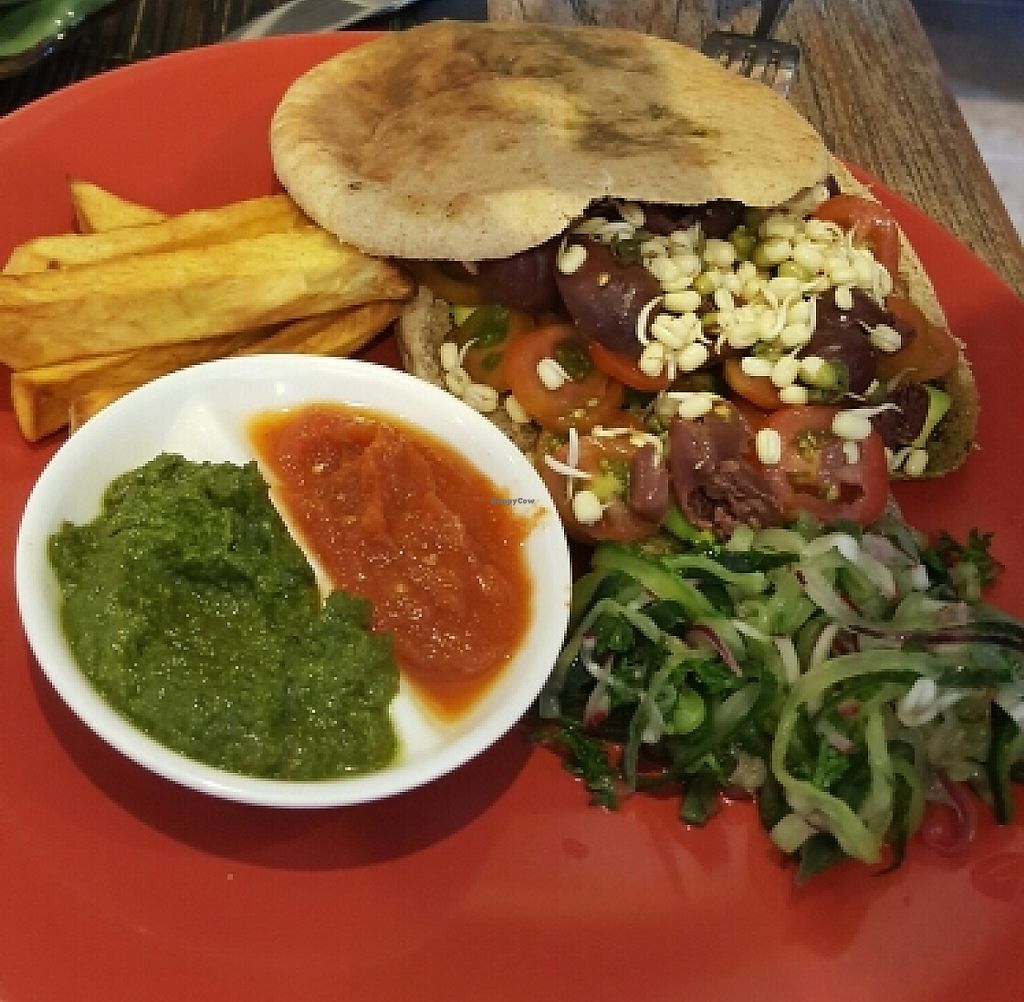 We stumbled upon this place and what a great find it was! Most things seemed to be vegan with them using milk/cheese alternatives etc but it wasn’t clearly labelled. We had a falafel pitta and a pizza (with cashew mozzarella) which were both delicious!! The juices were nice but nothing special. The staff were friendly, and the restaurant itself had a nice calm atmosphere. Really enjoyed our food here :)