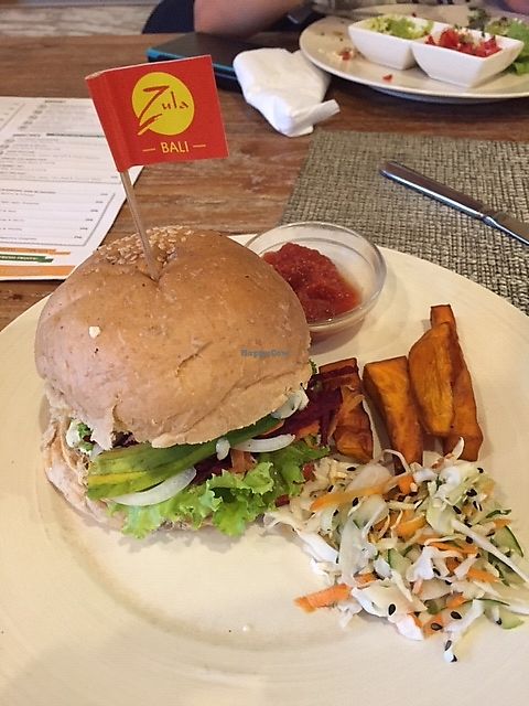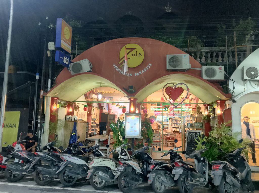 We ate here several times during our time in Seminyak, Bali. Their menu covers a lot of ground. Feeling like Mexican? Zulas got you covered. Prefer Mediterranean, no problem. Want a milkshake and burger, you've got it. We tried tacos, burritos, spaghetti and seitan balls, soy milkshakes, burgers, and some sort of tempeh or seitan "meat" with potatoes and gravy. Oh and desserts, lots of desserts. Everything was good, we enjoyed our meals and appreciated the large selection. I felt confident that our dishes were vegan but maybe double check a few of the items as honey and goats cheese does show up on the menu.