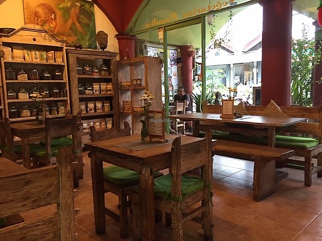 In the middle of a busy area this cafe/restaurant/shop was a wonderful find! After staying in Legian where the only vege options mostly consist of Vege Burgers, it was nice to finally have some FRESH tasting food. A big array of dishes on the menu too. The cabinet of desserts was an added bonus! Really lovely staff. Nice feel to the space.