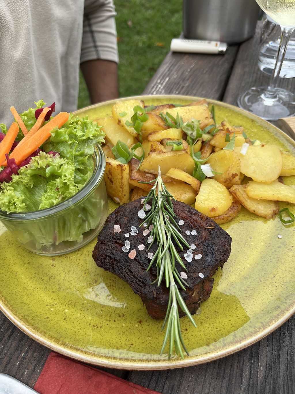 Read moreDie veganen Speisen sind in der Speisekarte sehr gut markiert. Das insgesamt nachhaltige und regionale Angebot hat meinen alles essenden Begleitern ebenfalls gut gefallen. Die Speisen waren durchweg lecker und sehr ansprechend angerichtet. Die vegane Variante des gebratenen Käses mit Bratkartoffeln hat mir gut geschmeckt.