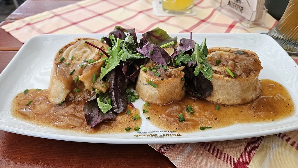 Typical bavarian restaurant in the heart of Oberstdorf. They offer two vegan options, Krautkrapfen and Maultaschen. We tried both, it was good, especially the Krautkrapfen were delicious!