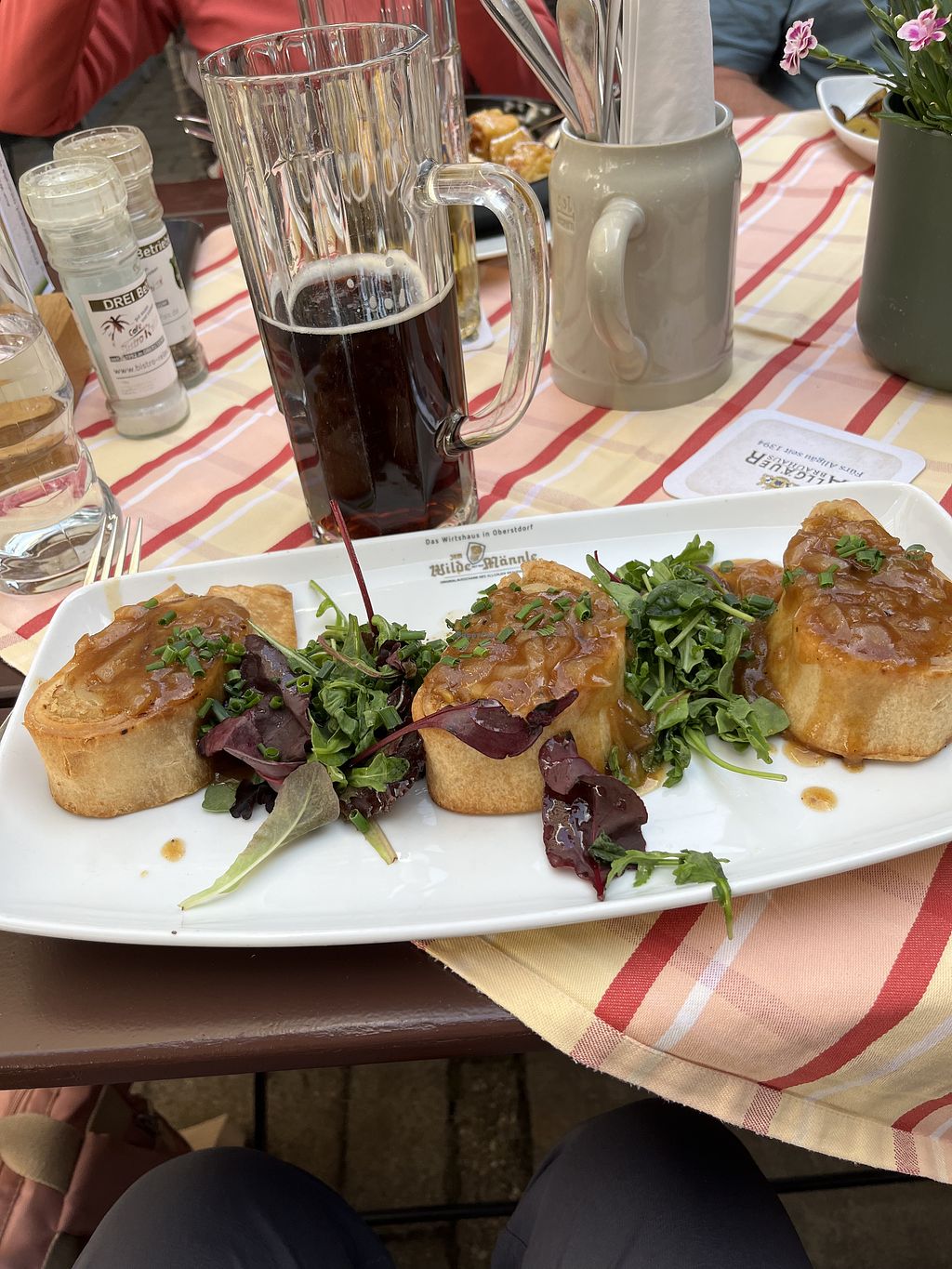 Gestern einen schönen Tag in Oberstdorf gehabt und durch Happy Cow auf das Restaurant "Zum Wilden Männle" gekommen. Wir saßen draußen und hatten einen schönen Tisch von wo aus wir zwischen zwei Häusern die Berge bestaunen konnten.