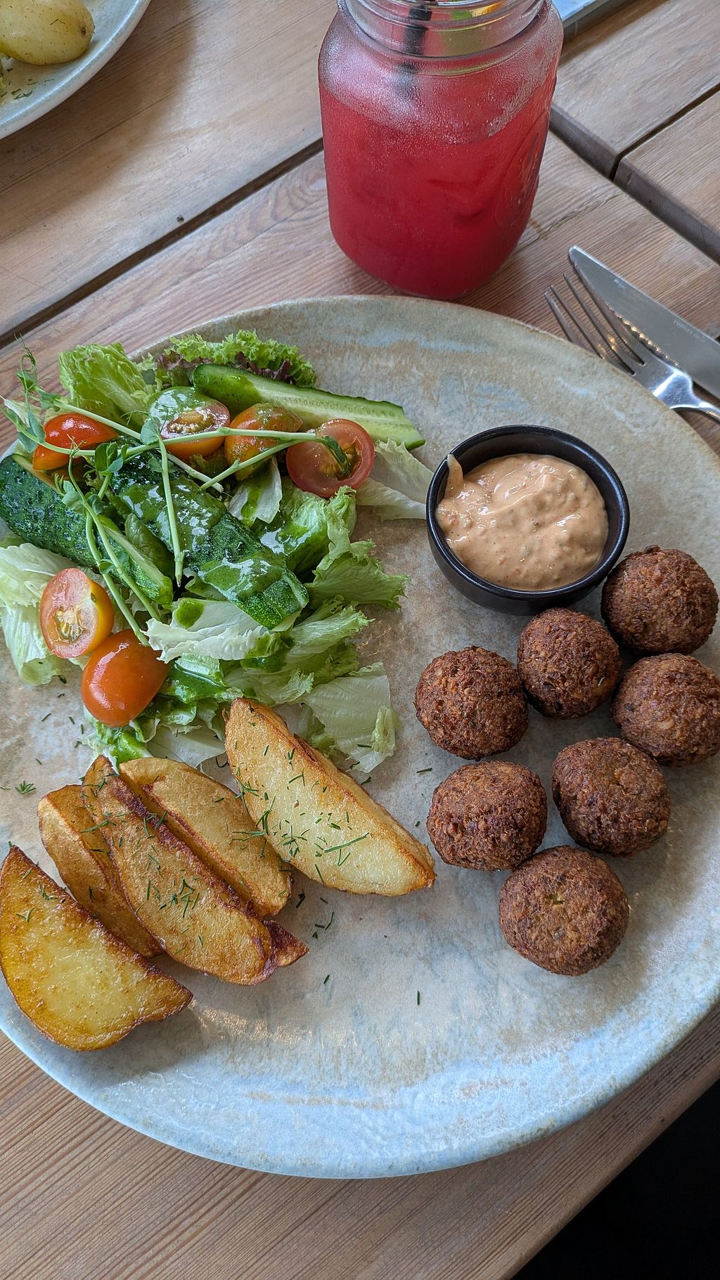 They have one item on the menu that's marked vegan, falafel with salad and potatoes. It tasted fine, the potatoes had a nice crisp, but it wasn't a very big portion especially for 16€.