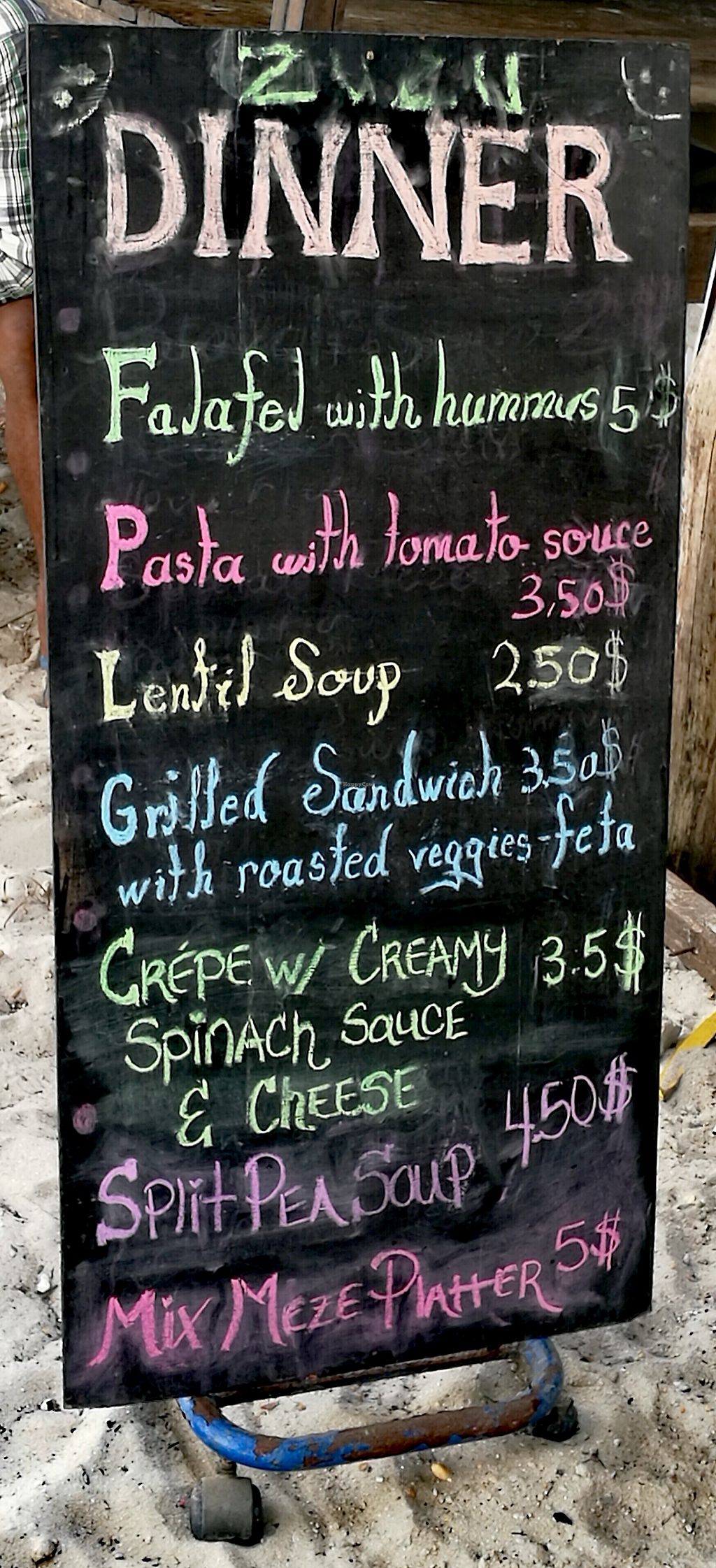 Located at a little quieter place with very nice view of the beach. The menu depends on what ia available on the island and feels very homemade! The owner/cook knows excellent English and she can easily say what is vegan, and she is very nice!! We had the lentil soup which comes with homemade vegan bread and it was delicious. The falafel and hummus is nice to, although I could eat more of the hummus :)
