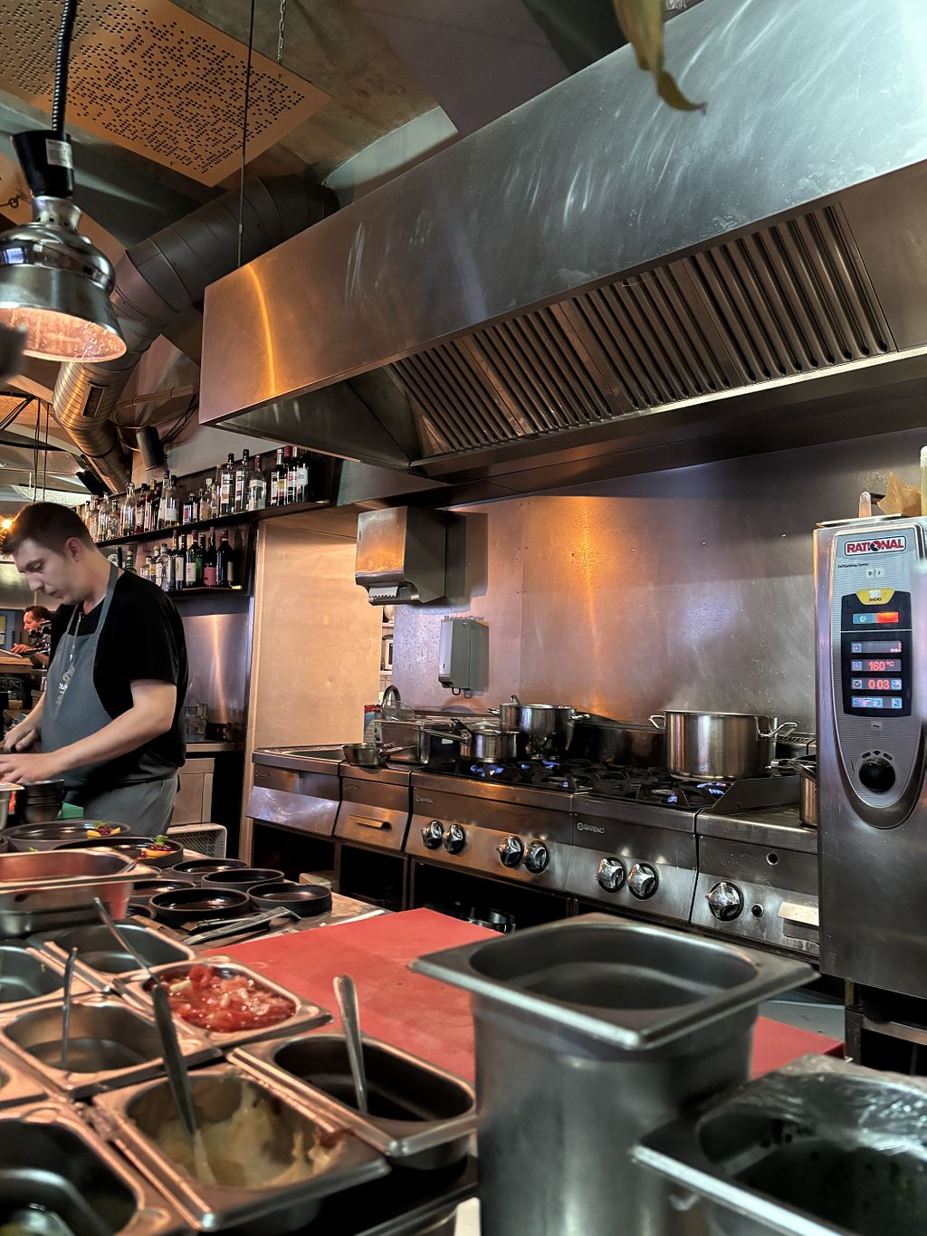 A changing menu which always has several very tasty, and also interesting and different, vegan options (e.g. who knew that leek tastes great with kiwi?!). Cool and relaxed atmosphere and good wine and cocktails.