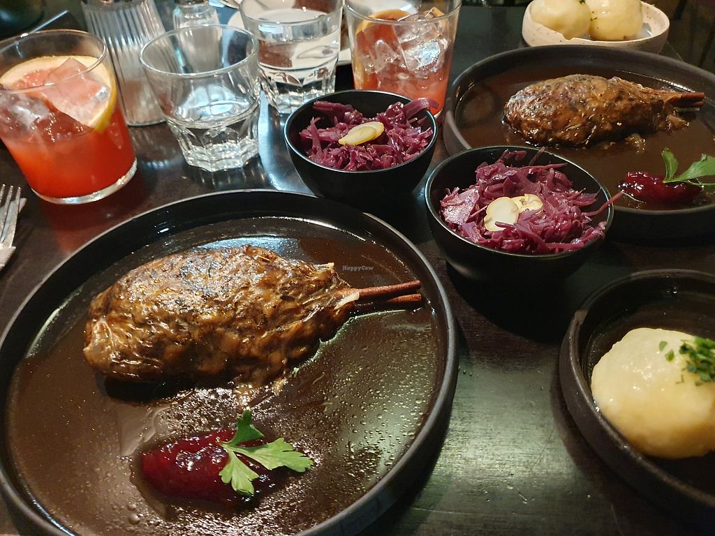 Vegansl mit Rotkraut und Erdäpfelknödeln