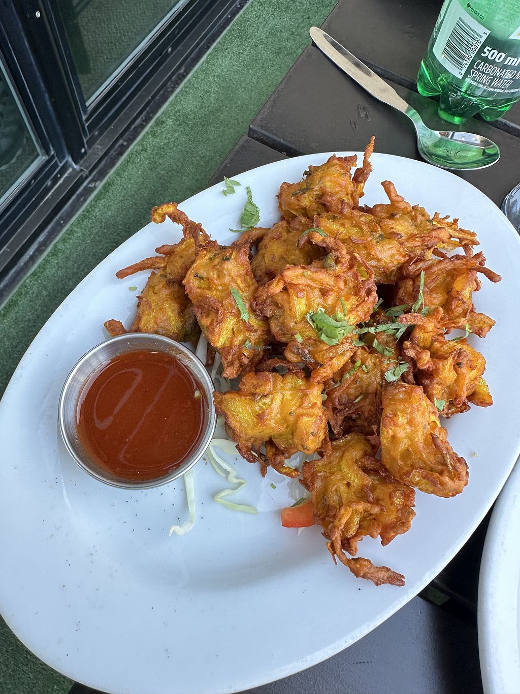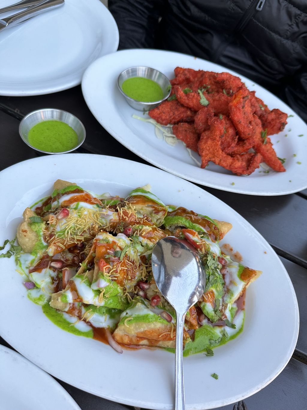 We sat outside and it was such a vibe — perfect weather, cozy setup, and great service. The food was really delicious, especially the pakoras, which was crispy and full of flavor. Definitely recommend this spot if you’re craving good Indian food.